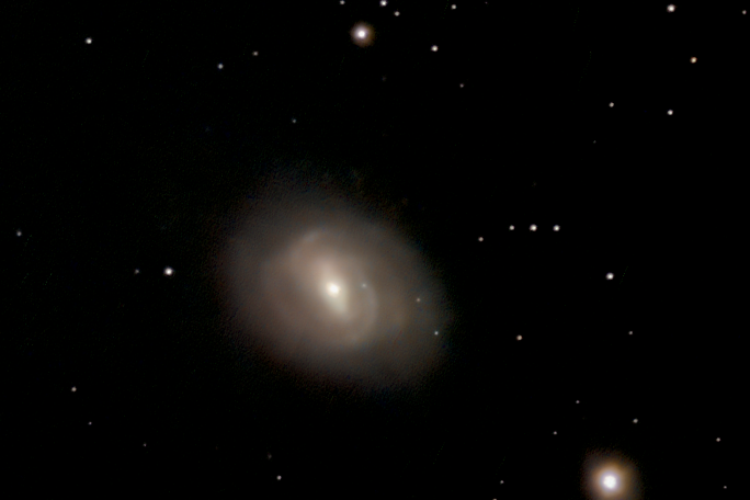 Messier 58 (also known as M58 and NGC 4579) is an intermediate barred spiral galaxy with a weak inner ring structure located within the constellation Virgo, approximately 68 million light-years away from Earth. It was discovered by Charles Messier on April 15, 1779 and is one of four barred spiral galaxies that appear in Messier's catalogue. M58 is one of the brightest galaxies in the Virgo Cluster. From 1779 it was arguably (though unknown at that time) the farthest known astronomical object until the release of the New General Catalogue in the 1880s and even more so the publishing of redshift values in the 1920s. Like many other spiral galaxies of the Virgo Cluster (e.g. Messier 90), Messier 58 is an anemic galaxy with low star formation activity concentrated within the galaxy's optical disk, and relatively little neutral hydrogen, also located inside its disk, concentrated in clumps, compared with other galaxies of similar morphological type. This deficiency of gas is believed to be caused by interactions with Virgo's intra-cluster medium. Messier 58 has a low-luminosity active galactic nucleus, where a starburst may be present as well as a supermassive black hole with a mass of around 70 million solar masses. It is also one of the very few galaxies known to possess a UCNR (ultra-compact nuclear ring), a series of star-forming regions located in a very small ring around the center of the galaxy. This led to its being dubbed the "ring bearer galaxy" by the popular astronomy YouTube program "Deep Sky videos".