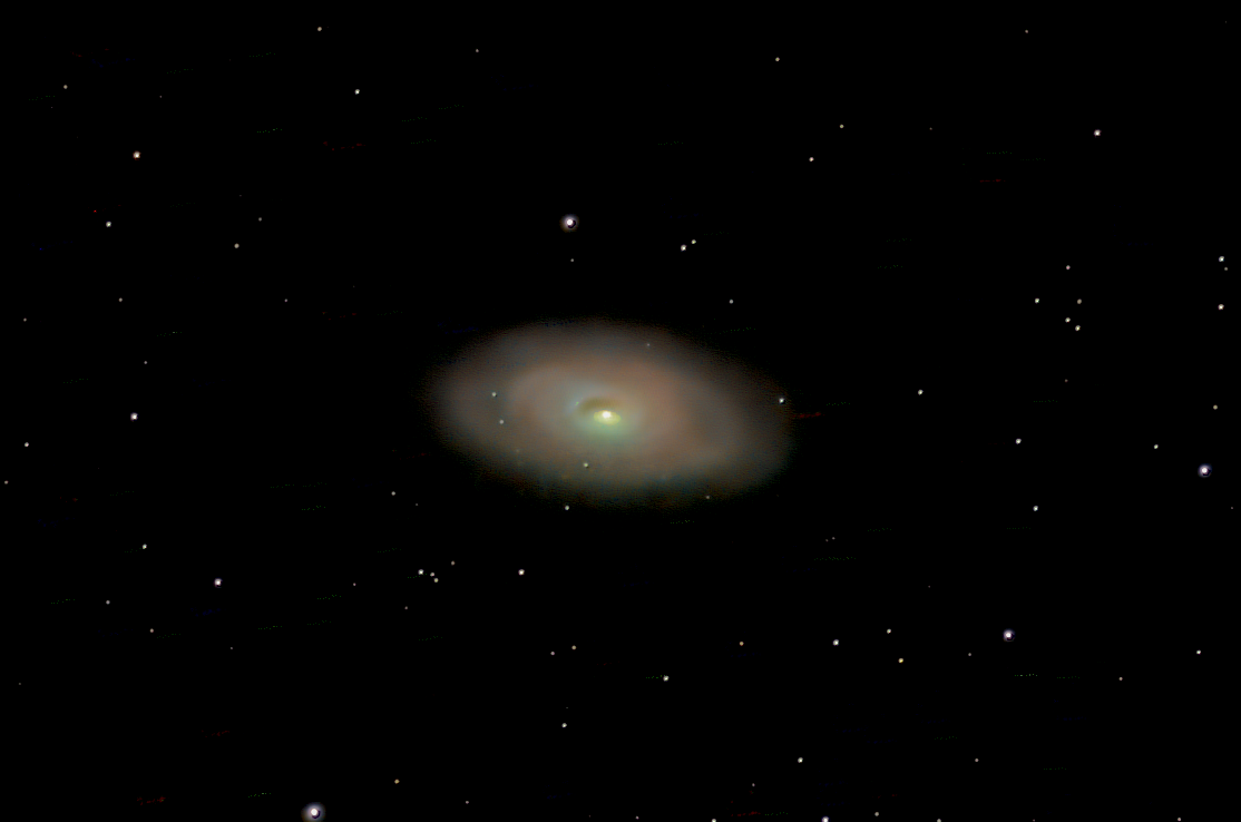 The Black Eye Galaxy (also called Sleeping Beauty Galaxy or Evil Eye Galaxy and designated Messier 64, M64, or NGC 4826) is a relatively isolated spiral galaxy 17 million light-years away in the mildly northern constellation of Coma Berenices. It was discovered by Edward Pigott in March 1779, and independently by Johann Elert Bode in April of the same year, as well as by Charles Messier the next year. A dark band of absorbing dust partially in front of its bright nucleus gave rise to its nicknames of the "Black Eye", "Evil Eye", or "Sleeping Beauty" galaxy. M64 is well known among amateur astronomers due to its form in small telescopes and visibility across inhabited latitudes. This galaxy is inclined 60° to the line-of-sight and has a position angle of 112°. At the distance of this galaxy, it has a linear scale of 65 ly (20 pc) per arcsecond. The morphological classification in the De Vaucouleurs system is (R)SA(rs)ab, where the '(R)' indicates an outer ring-like structure, 'SA' denotes a non-barred spiral, '(rs)' means a transitional inner ring/spiral structure, and 'ab' says the spiral arms are fairly tightly wound. Ann et al. (2015) gave it a class of SABa, suggesting a weakly barred spiral galaxy with tightly wound arms. M64 is a type 2 Seyfert galaxy with an HII/LINER nucleus. The central region is a weak source of radio emission. A soft X-ray source has been detected at the nucleus, which is most likely coming from the circumnuclear region rather than directly from an active galactic nucleus. There is an inner disk of molecular gas that is truncated at a radius of 2,300 ly (700 pc). At present, the non-rotational motions of this disk do not significantly feed the core, but the disk does produce a vigorous rate of star formation, with also approximately 100 billion stars inside the galaxy. There is also evidence of a recent large inflow of mass. The central supermassive black hole is calculated to have a mass of about 8.4×106 M?. The interstellar medium of Messier 64 consists of two counter-rotating disks that are approximately equal in mass. The inner disk contains the prominent dust lanes of the galaxy. The stellar population of the galaxy exhibits no measurable counter-rotation. Possible formation scenarios include a merger with a gas-rich satellite galaxy in a retrograde orbit, or the continued accretion of gas clouds from the intergalactic medium. It has a diameter of 16.51 kiloparsecs (53,800 light-years). Messier 64 is part of the Virgo Supercluster.
